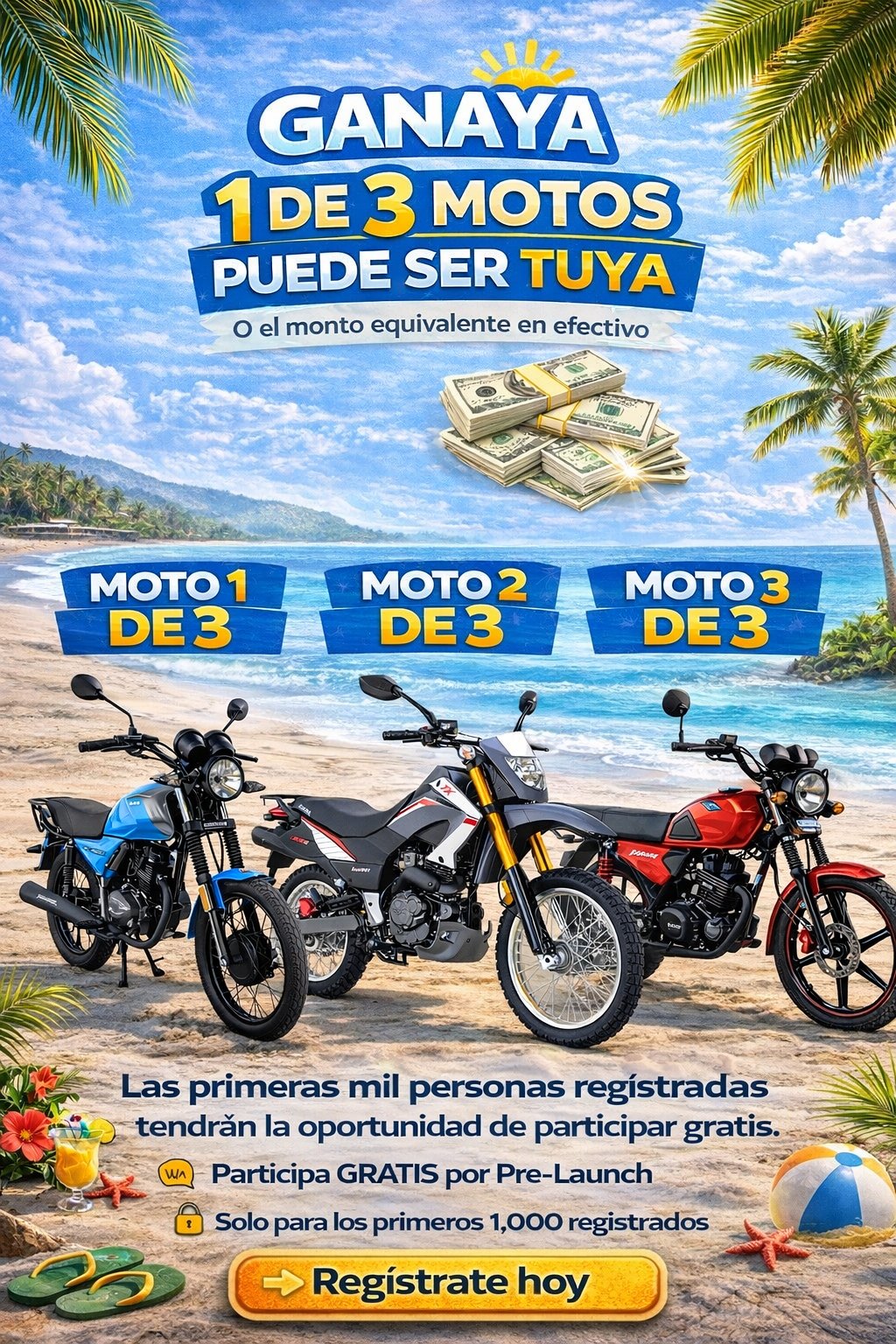 ¡Esta es tu oportunidad de volver a casa con estilo! Participa en nuestras rifas exclusivas para ganar el carro o la moto de tus sueños y premios en efectivo.